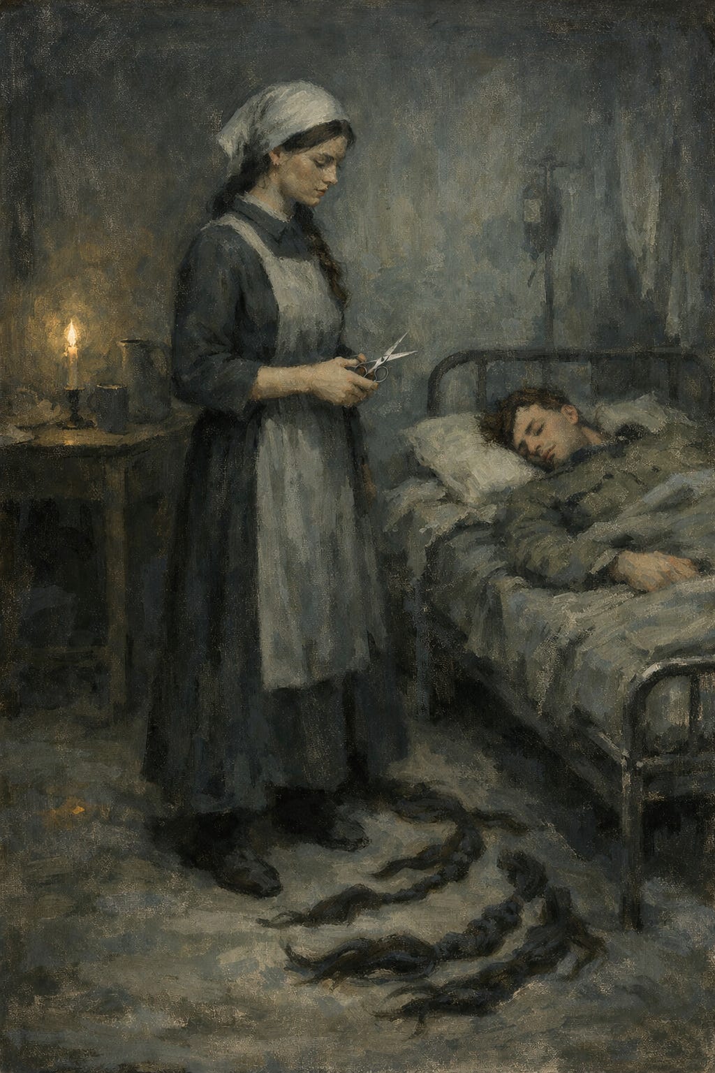 — Qu’est-ce que tu fais avec ça ? L’interrogea-t-elle. Le patient m’avait dit qu’il ne fallait pas lui couper les cheveux. — Bien sûr que si ! Ce n’est pas à lui de décider, affirma Anna, sûre d’elle. — Tu ne l’as pas fait quand même ?